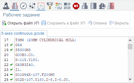 Более подробная информация о возможностях работы с текстом УП описана в разделе < Job assignment for G-code based operation >